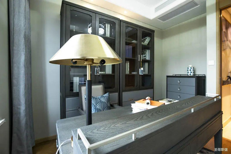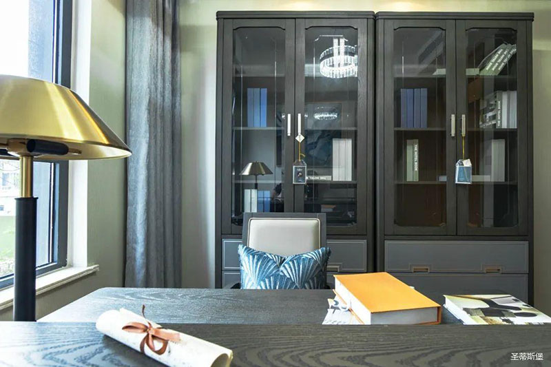 站在书房门口,都被书桌强大的气场震撼,极具建筑美学的书桌四角与实木材质质感显露出空间的大气与张力,以减法设计概念,去繁求简,却在功能收纳上绝对满足日常所需,回归生活本真,绝对是书房不可或缺的书桌。